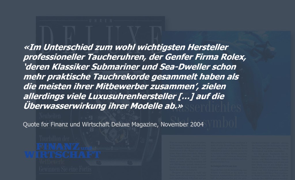 Konrad Koch looked at waterproof status symbols for Finanz und Wirtschaft‘s “Deluxe” supplement in November 2004.