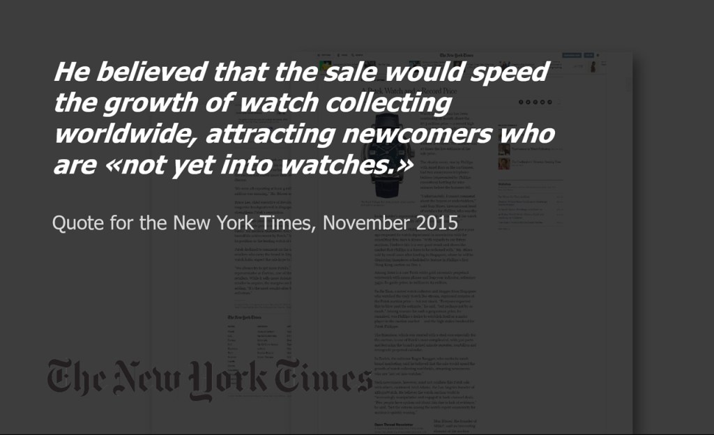 on “A Patek Watch and a Record Price” – Quote for the New York Times